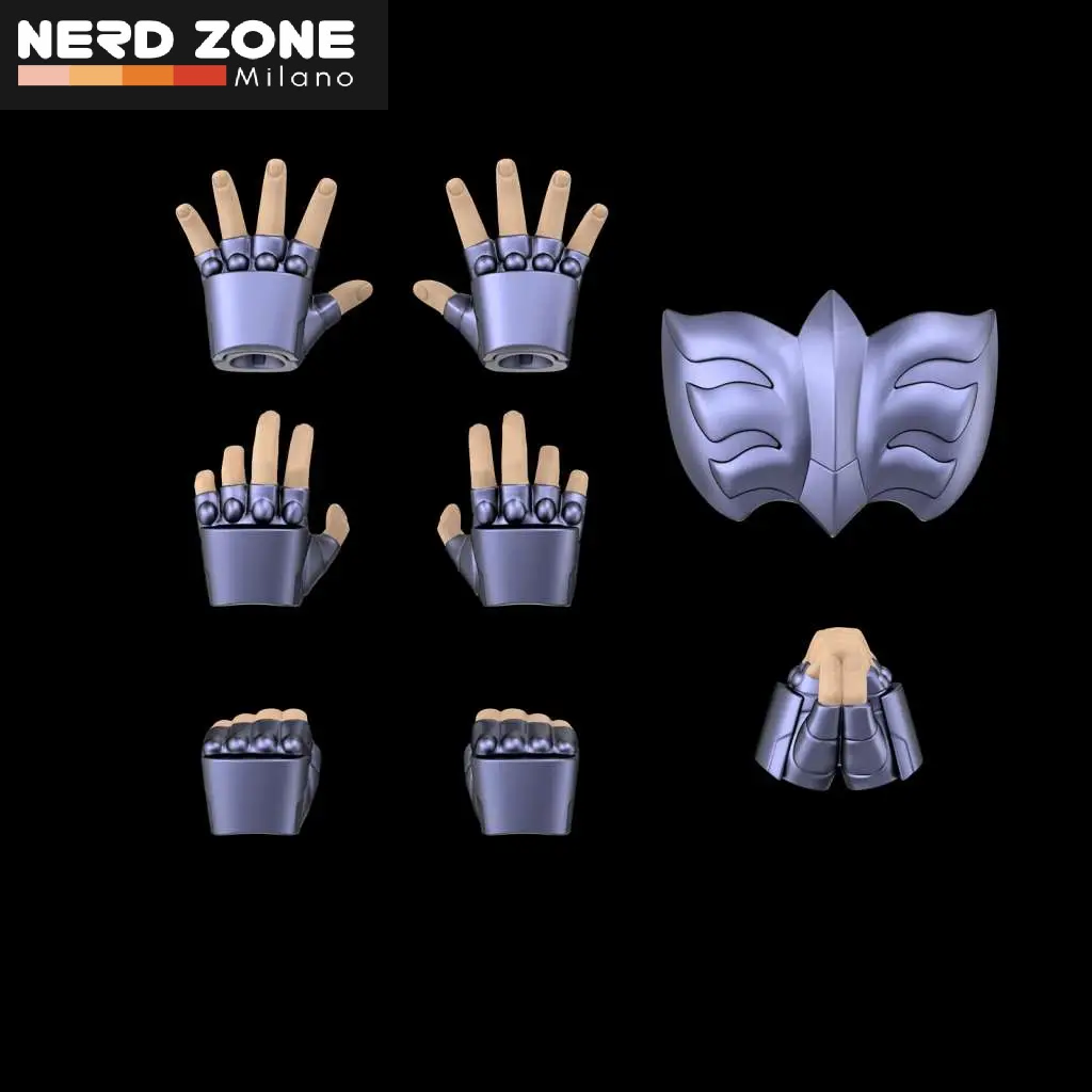 Con volti, copricapo e mani intercambiabili, include anche un supporto espositivo dedicato e un set completo di accessori per pose dinamiche.
