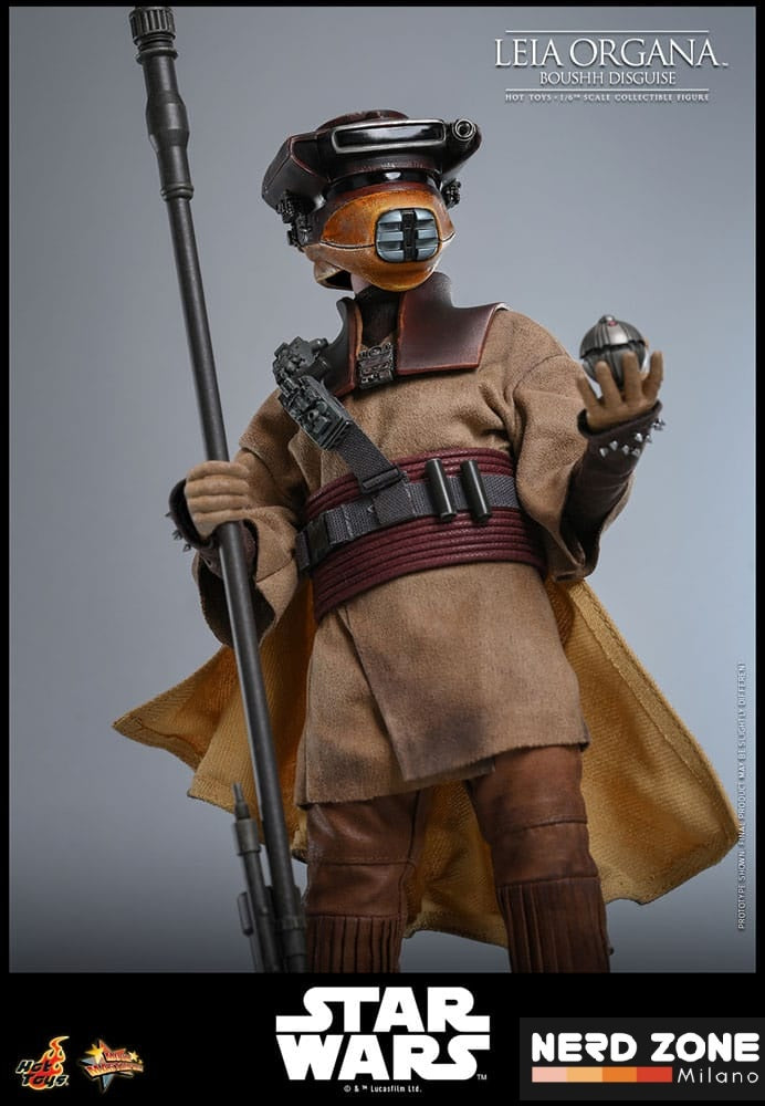 Sideshow e Hot Toys sono orgogliose di presentare la statuetta da collezione in scala 1/6 di Leia Organa (travestimento Boushh)™. L'action figure di Star Wars presenta una testa con elmo di nuova concezione con invecchiamenti dettagliati, oltre a una scultura separata della testa senza elmo di Carrie Fisher nei panni di Leia, completata da bulbi oculari rotanti, un'espressione realistica e un'acconciatura con chignon basso e treccia meticolosamente scolpita.