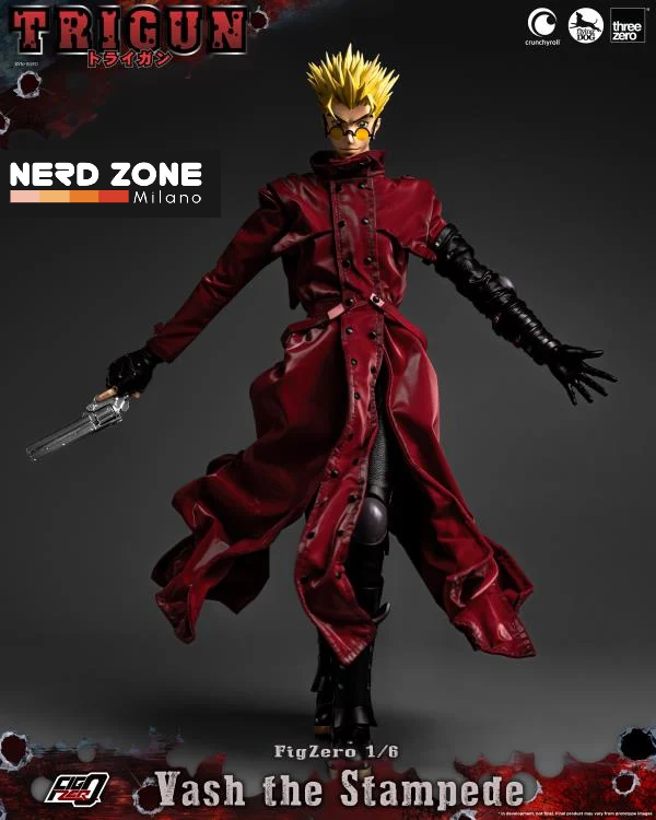 Dal celebre anime Trigun (arrivato in Italia ai tempi delle "anime night" di Mtv) Threezero presenta la figure da collezione completamente articolata scala 1/6 dedicata a Vash the Stampede.