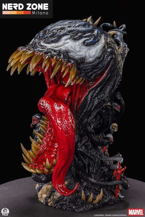 Alto circa 22 pollici (circa 56 cm), questo magnifico tributo al sinistro simbionte è ricco di dettagli incredibili che celebrano la storia del personaggio nell’universo Marvel.